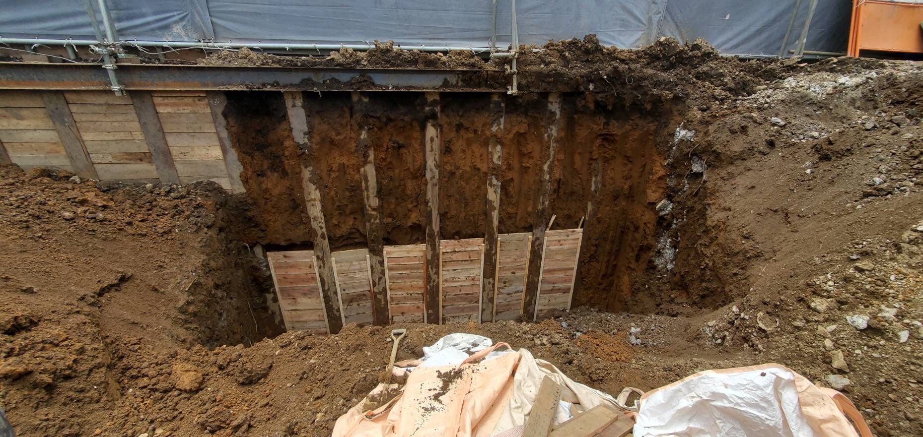 過去には一般民家の下から戦時中の先頭の煙突基礎や不発弾(!)が見つかって非常線を張られたことも・・・。